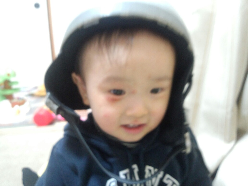 ヘルメット被って気取ってるやんちゃくん