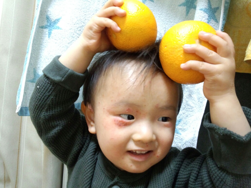 八朔を持って「ミッキー」と言ってはしゃいでます。