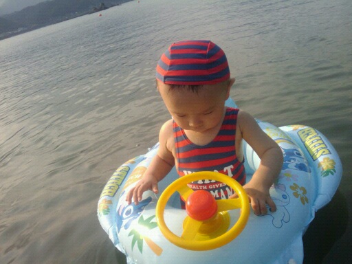 じぃじに買ってもらった浮き輪に乗って海デビュー☆